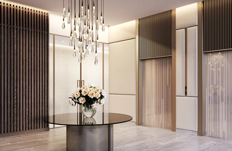 Грандиозный комплекс будет состоять из 70 уровней, где интерьеры будут выполнены по эксклюзивному концепту от итальянского бренда Cavalli. Роскошный небоскреб поразит своих жителей с первого взгляда: грандиозный лобби, расположенный на первых 4 уровнях, с крытым водопадом и ослепительным световым люком.